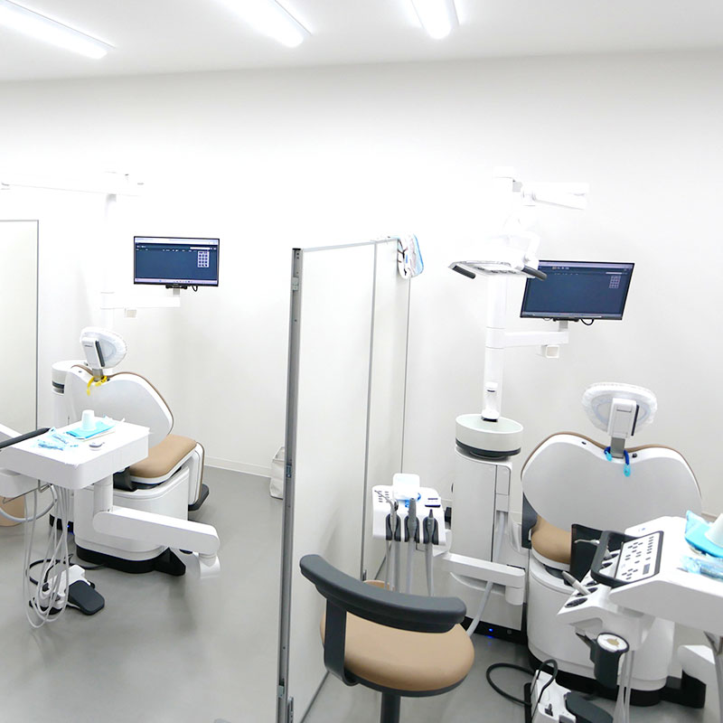 阪急宝塚線・曽根駅から徒歩3分。平日夜間や土曜も診療しています。院内は徹底した衛生管理のもと、歯科用CTや口腔内スキャナーを用いたわかりやすい説明を行い、患者さまに快適に通っていただける環境を整えています。