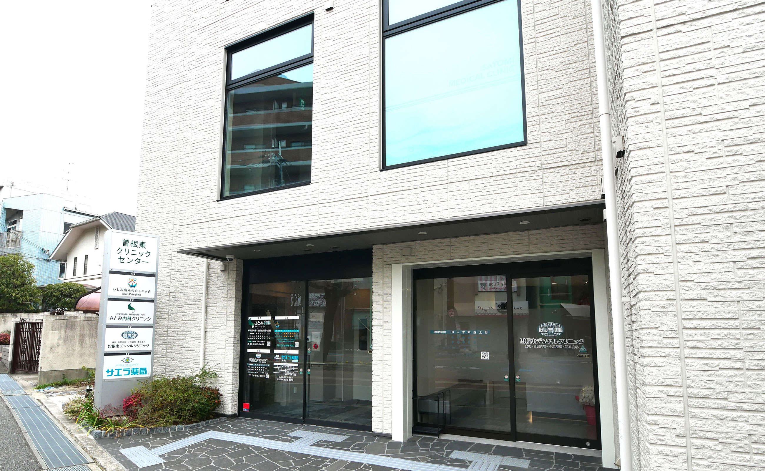 阪急宝塚線・曽根駅から徒歩3分。平日夜間や土曜も診療を行っており、通院しやすい環境です。一般歯科から矯正歯科、インプラント、スポーツマウスガードの製作まで幅広く対応し、お子さまからシニアの方まで親子3世代でご来院いただけます。